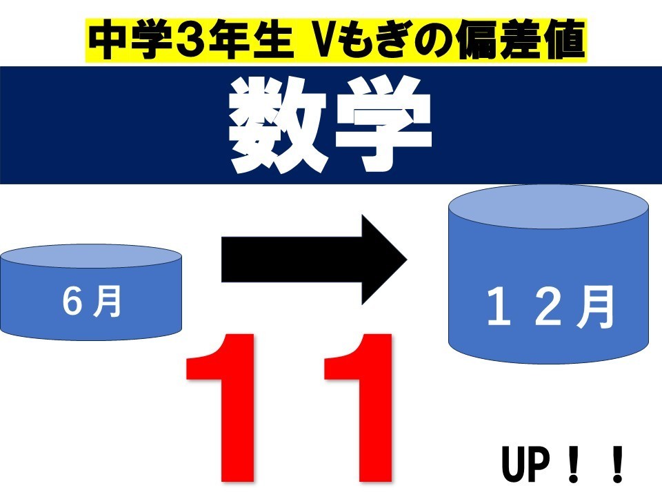 ■12/16(火) 「Vもぎ」の結果!!導育塾【東大和】数学・英語の専門性が高く、一人ひとりに向き合りに向き合う進学塾、導育塾 東大和教室、すばらしい結果です!!、数学のVもぎの結果、「11」UPを実現しました!!、まだ、細かいミスがあるため、まだまだ上がるぞ!!