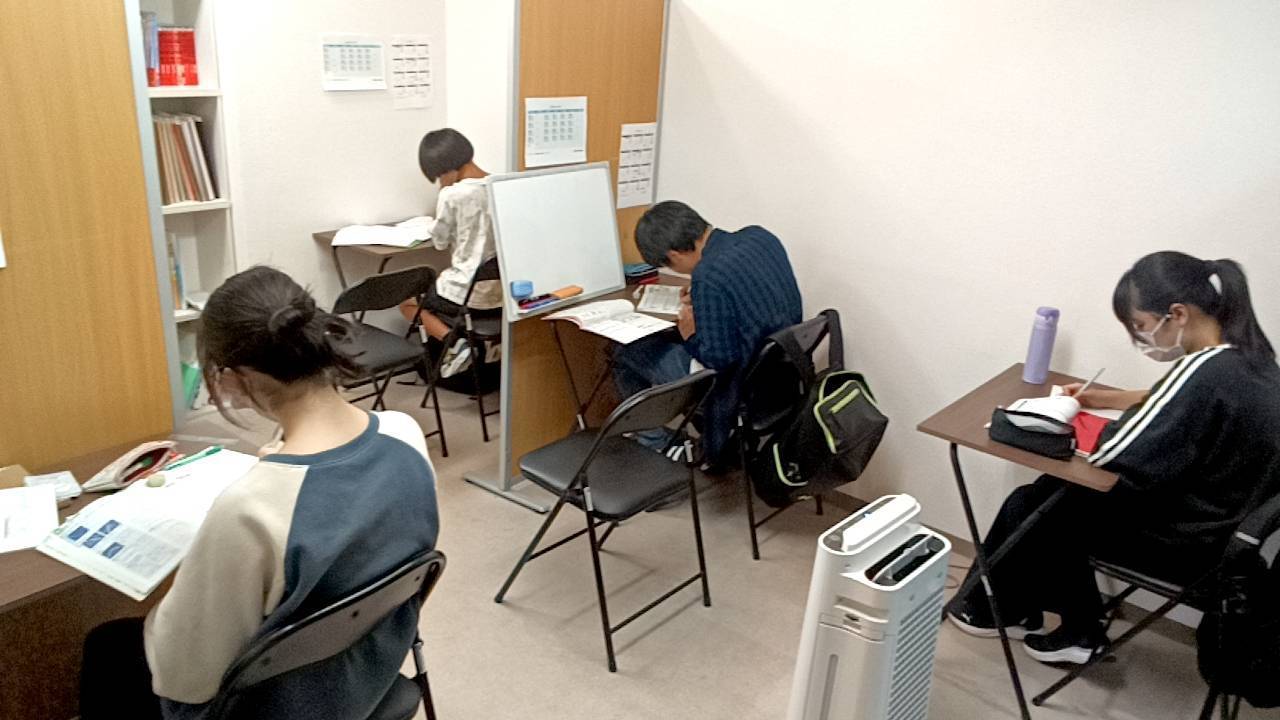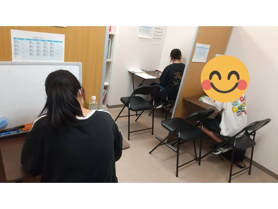 ■9/18(木)集中して頑張ってます!!導育塾【東大和】数学・英語の専門性が高く、一人ひとりに向き合りに向き合う進学塾、導育塾 東大和教室、来週の中間テストに向けて頑張ってます!!、集中して問題集に取り組む姿、非常にすばらしいです!!
