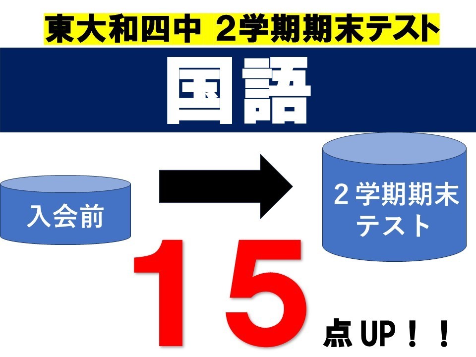 ■11/19(水) 東大和四中 2学期期末テスト「国語15点UP!!導育塾【東大和】数学・英語の専門性が高く、一人ひとりに向き合りに向き合う進学塾、導育塾 東大和教室、頑張りました!!、東大和四中 2学期期末テスト15点UPを実現!!、すばらしい!!!