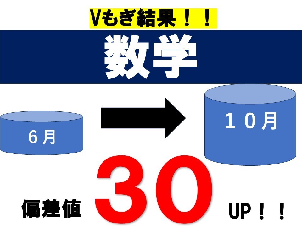 ■11/3(月) Vもぎ結果!!数学の偏差値が「30」UP!!導育塾【東大和】数学・英語の専門性が高く、一人ひとりに向き合りに向き合う進学塾、導育塾 東大和教室、驚異的な成績向上!!!!、数学のVもぎの偏差値が「30」UPしました!!、すばらしい!!